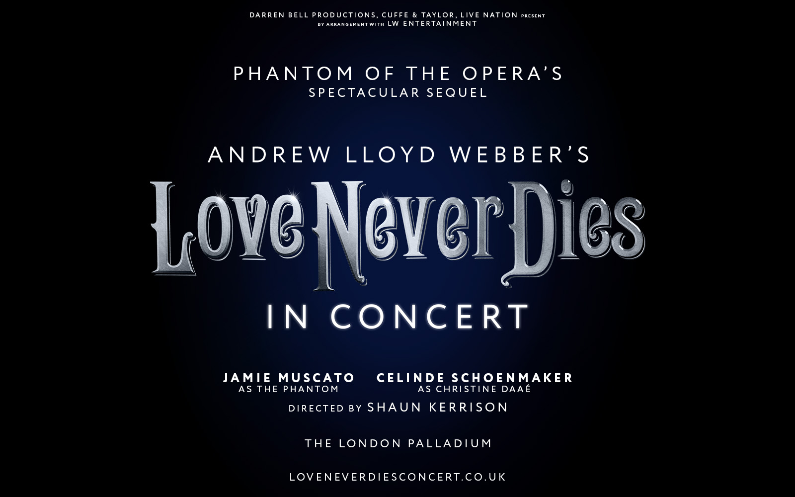 It has been announced that Jamie Muscato will play Phantom with Celinde Schoenmaker making her return as Christine in the concert production of Love Never Dies, taking place at the London Palladium on the 16th and 17th October.