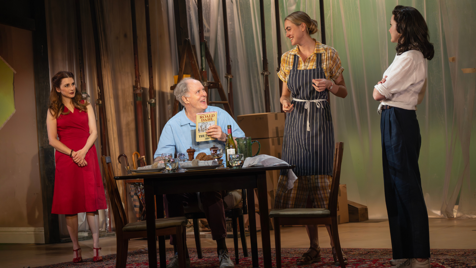 Theatre Mania: “Lithgow plays Dahl like an old-growth college sophomore. Clever and accustomed to being told so, he drives the conversation with impertinent questions and sarcastic asides, rarely allowing his guests to complete a sentence. Lithgow’s physical appearance seems to have transformed in this role, his hunched frame that of a giant on the wane, his face a sour pucker that occasionally twists in sadistic delight, or melts into genuine grief. It’s a performance that never hides what a bastard Dahl could be while also making us feel genuine empathy for an artist whose principled stance against murder has been interpreted as bigotry.”